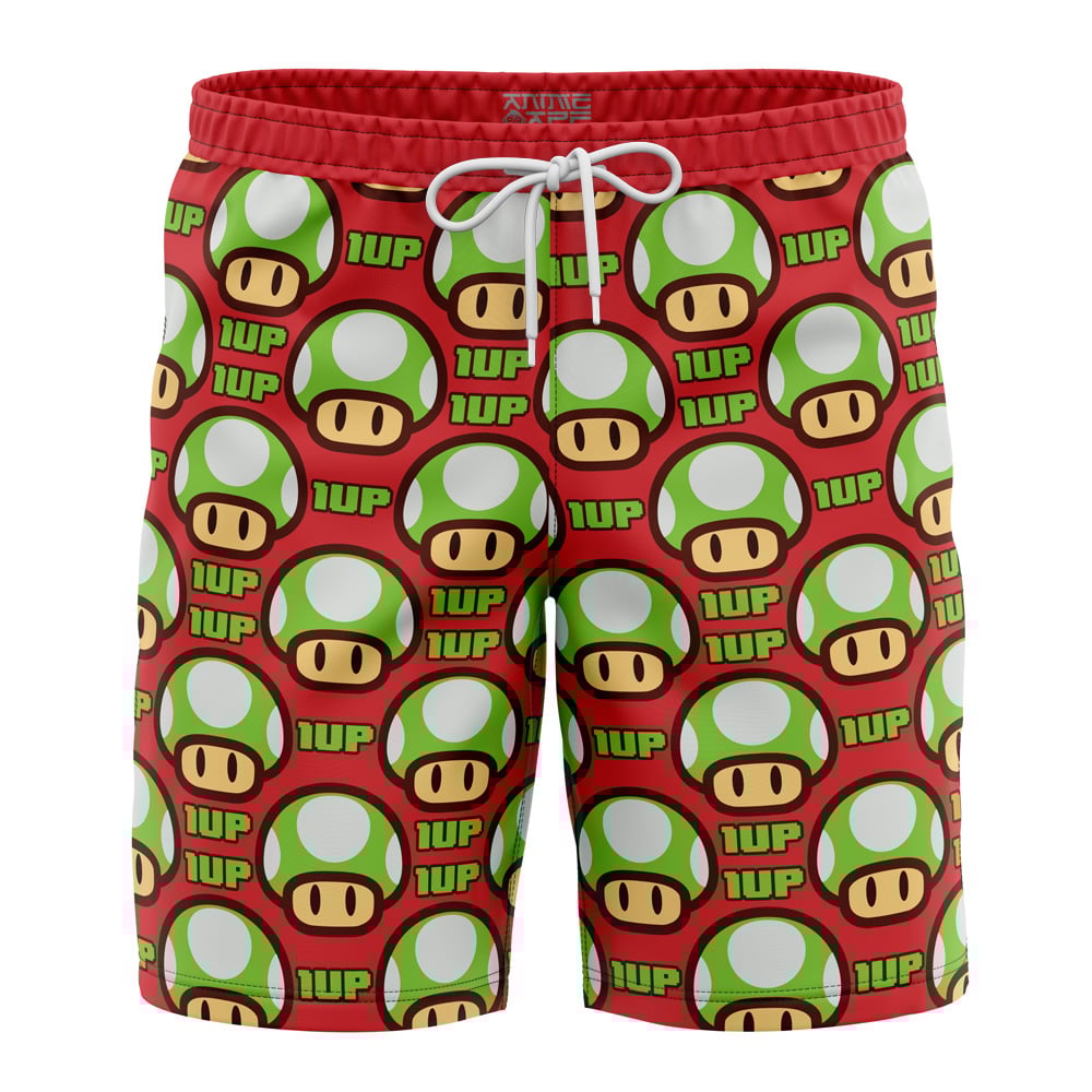 1Up Mushroom Super Mario Board Shorts Swim Trunks